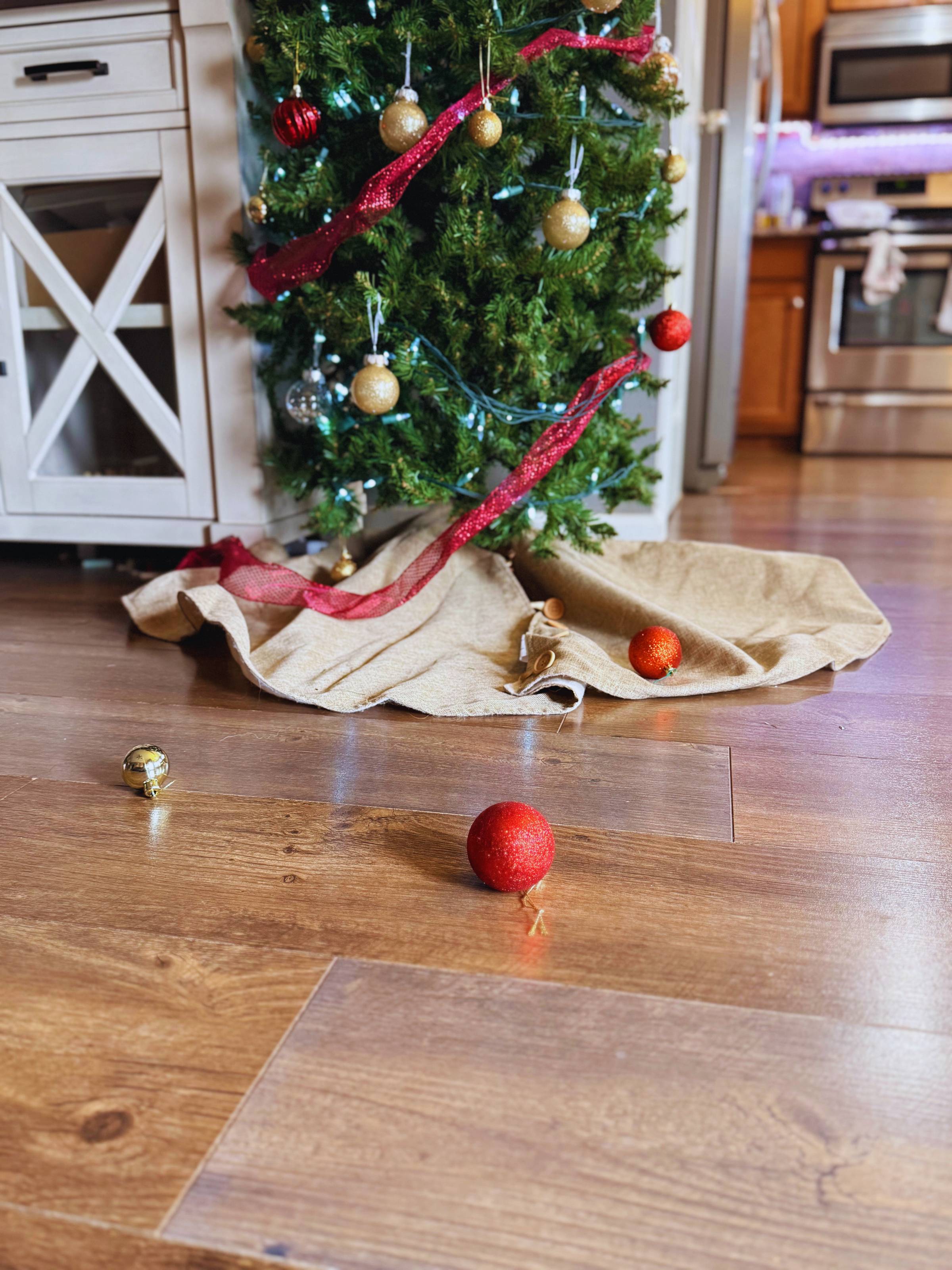 Lately, every time I turn around there are at least 3+ ornaments on the floor taken off by my two toddlers while my 4-year-old is going, "Mommyyy...mommyyy. Get them! They're taking off the ornaments again!"